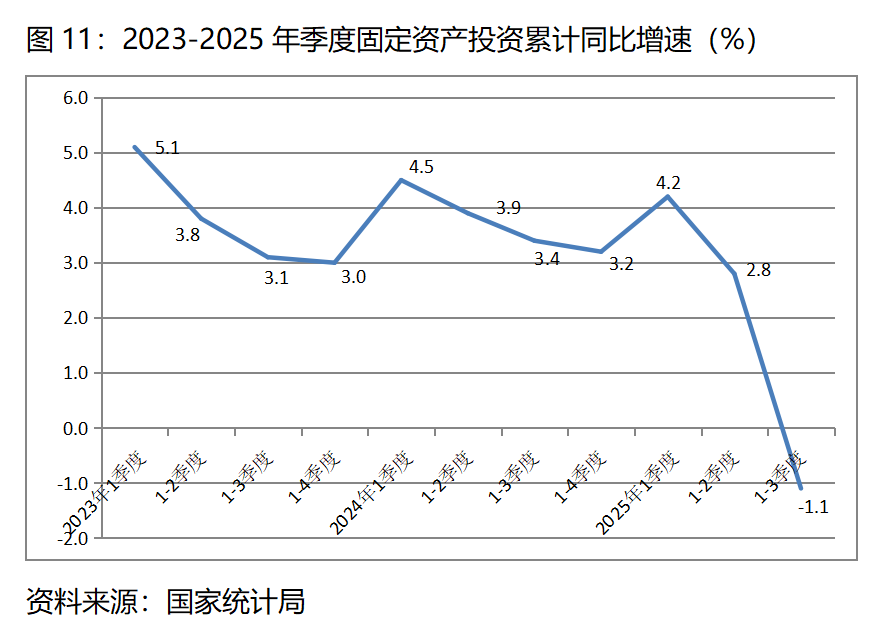 图11:2023-2025年季度固定资产投资累计同比增速(%)
