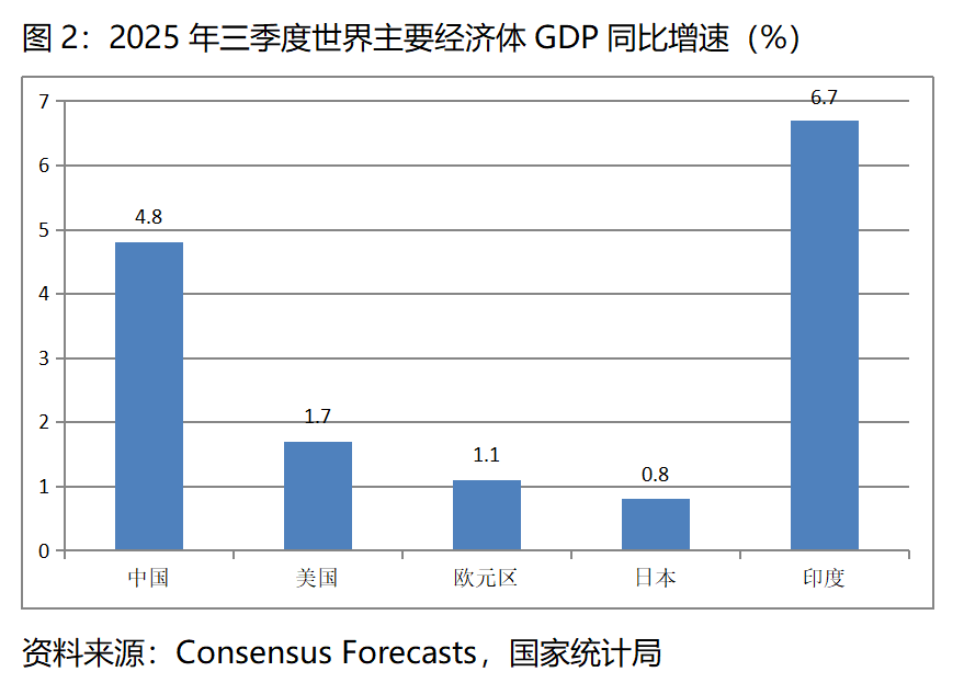 图2:2025年三季度世界主要经济体GDP同比增速(%)